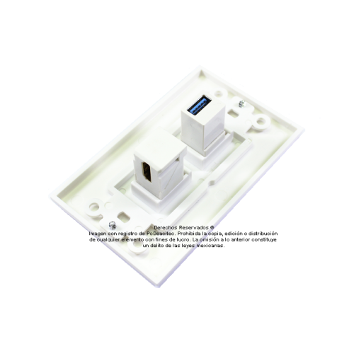 • La placa de pared cuenta con sistema keystone de sujeción lo que permite el intercambio de puertos en la misma placa.