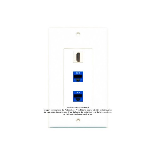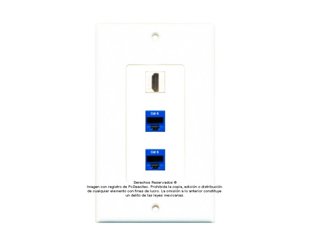 Placa Tapa Decora HDMI 4k pigtail + 2 Jack RJ45 Cat6 en ABS