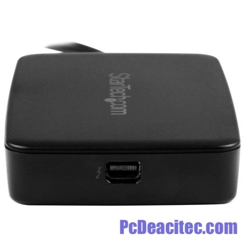 Dado que este adaptador es retrocompatible, es posible conectar dispositivos Thunderbolt de primera generación a velocidades de 10 Gbps. En el caso de dispositivos Thunderbolt 2, es posible la conexión a 20 Gbps. El adaptador es compatible con las transferencias de datos bidireccionales y la alimentación simultánea de dispositivos con alimentación por bus.