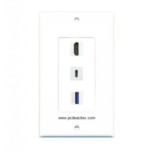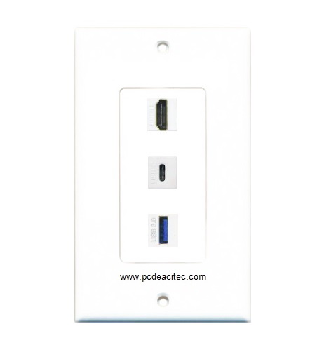 Placa Tapa ABS HDMI 4k pigtail + USB C + USB 3.0
